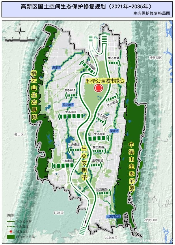 《规划》是建设西部(重庆)科学城的内在需求。建设西部(重庆)科学城是贯彻落实习近平总书记重要指示要求、推动成渝地区双城经济圈建设的重大部署,是引领新时代重庆高质量发展的战略举措。作为西部(重庆)科学城核心区,高新区将通过开展国土空间生态修复规划编制,部署“守山、治水、育林、理田、净湖、营城、智慧”7大生态修复任务,提升区域生态系统服务功能,优化国土空间生态安全格局,打造美好生活“新样板”,成为面向未来科技、未来产业、未来生活的科学之城,成为鼓励创新、开放包容、追逐梦想的创新高地,成为“科学家的家、创业者的城”。
