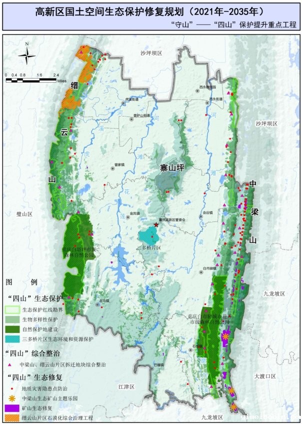开展寨山坪科学谷、生命芯谷、大健康产业园、金凤城市中心等片区生态修复,以及科学谷周边环境(香山公园)整体改造,维系区域水土保持功能,提升城市景观。 |